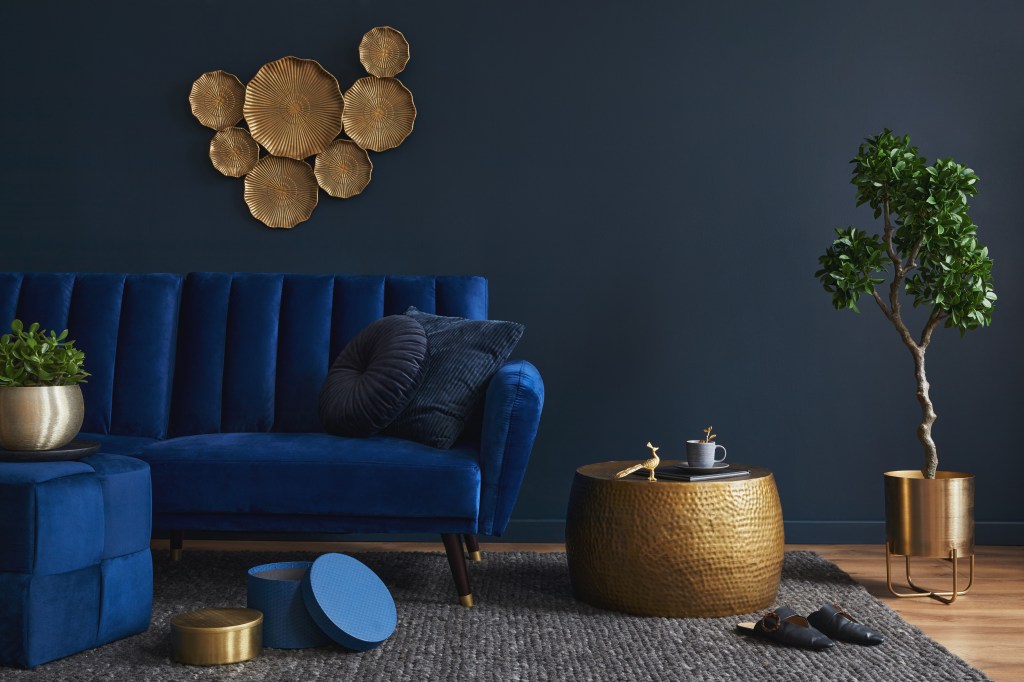 1. Color azul marino: Este color sigue formando parte de las tendencias de este año, el “nuevo negro” es el color adecuado para crear espacios elegantes y contemporáneos. Puedes aplicarlo con muebles, como un sofá color azul marino de terciopelo o pintando una pared.