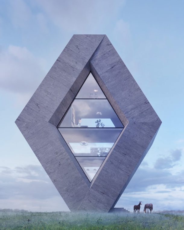 3. Rhombhouse: Este diseño en forma de rombo de 270m² diseñado por Karina Wiciak. Basado en el logo de Renault.